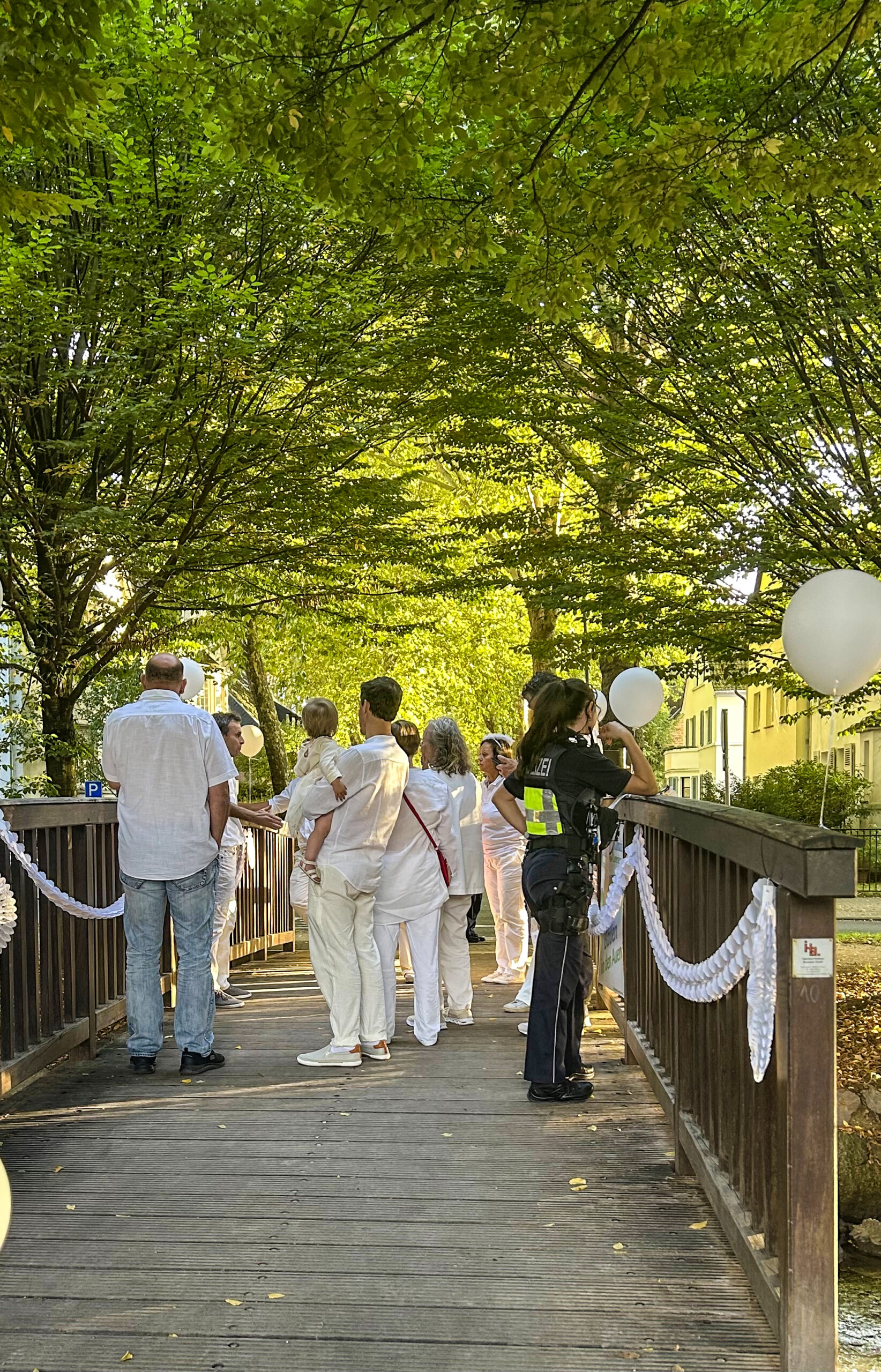 Die Bürgerinitiative hatte für den 6.September zum „White Dinner“ auf der Wiembachallee aufgerufen. Mehrere hundert Unterstützer trafen sich dort an dem herrlichen Abend zum Picknick. Alle kamen weiß gekleidet und nahmen an wunderschönen, ebenfalls in weiß gedeckten Tischen Platz.